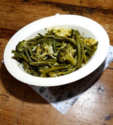 Kook de sperziebonen en de broccoli in kokend water met Keltisch zeezout beetgaar.